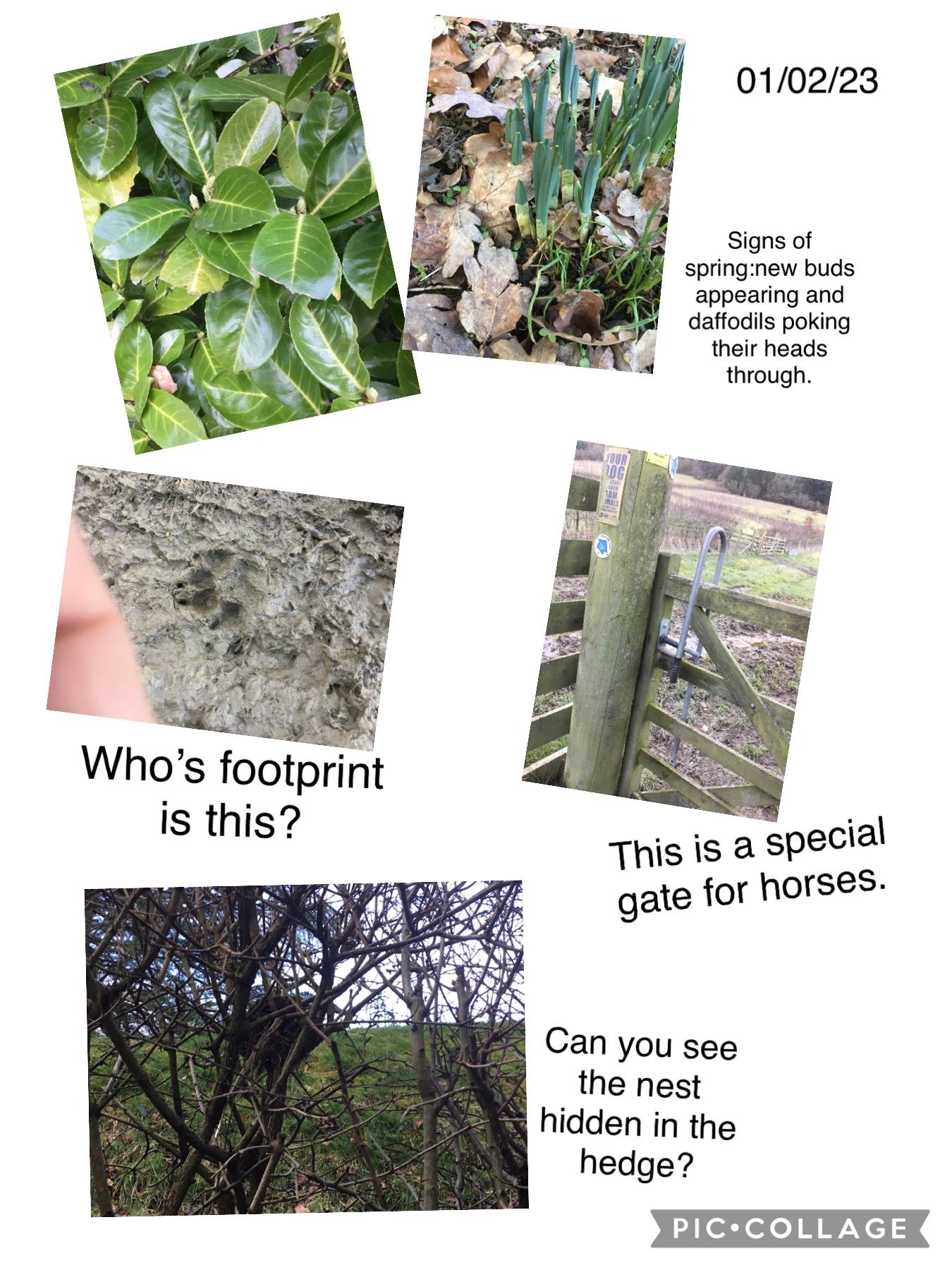 4th January 2023. We have been on a lovely New Year walk. As part of our science topic we will be identifying plants. On our walk we saw a few plants. Some were evergreen and one tree had forgotten to shed its Autumn leaves.