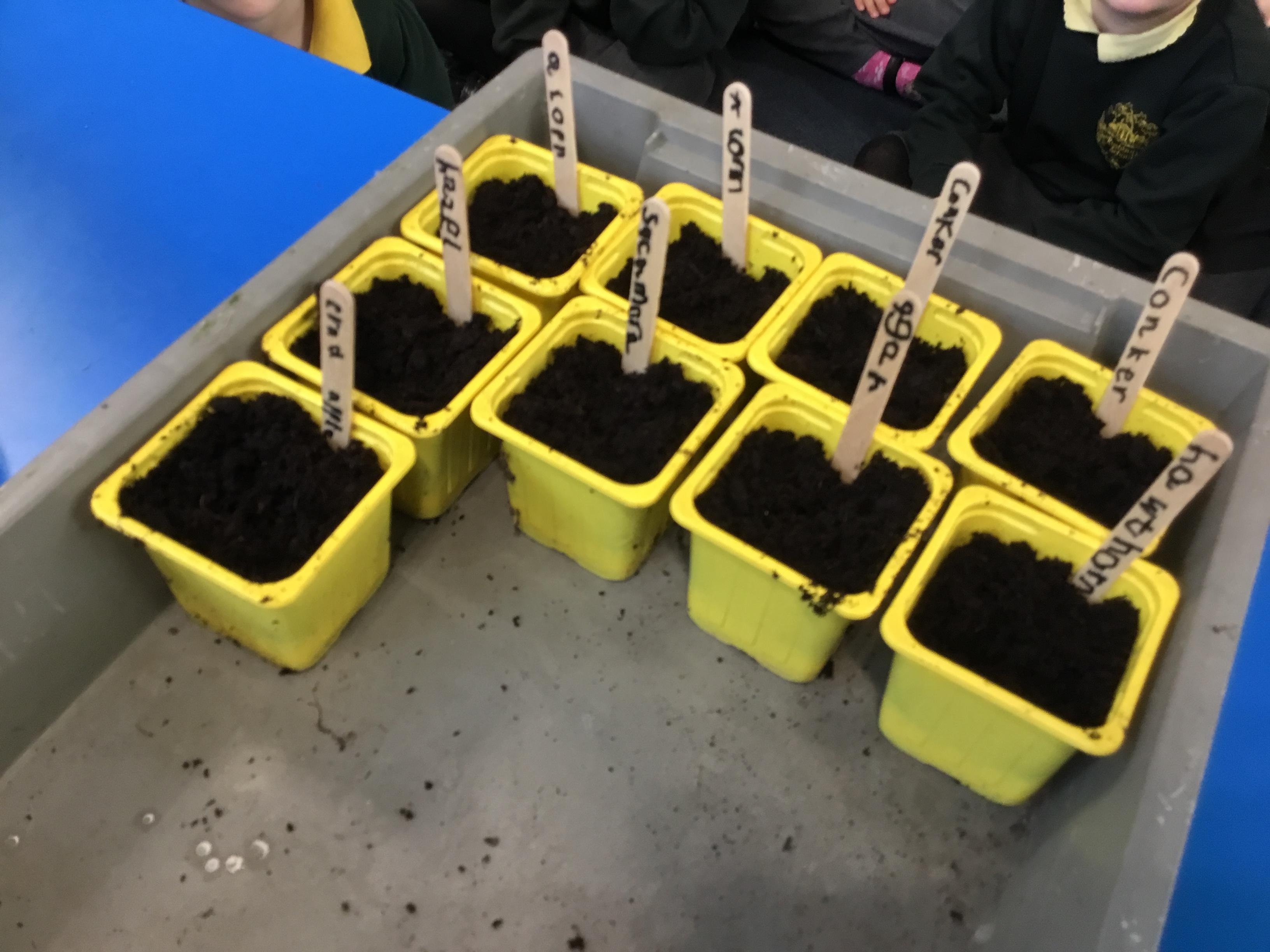 10th October 2023 - Today we went for a walk to collect seeds. After we collected them we took them back to school to plant them. We had conkers, sycamores, hazel, hawthorn, crab apple, pear and oak. We planted them and then put them in the greenhouse.