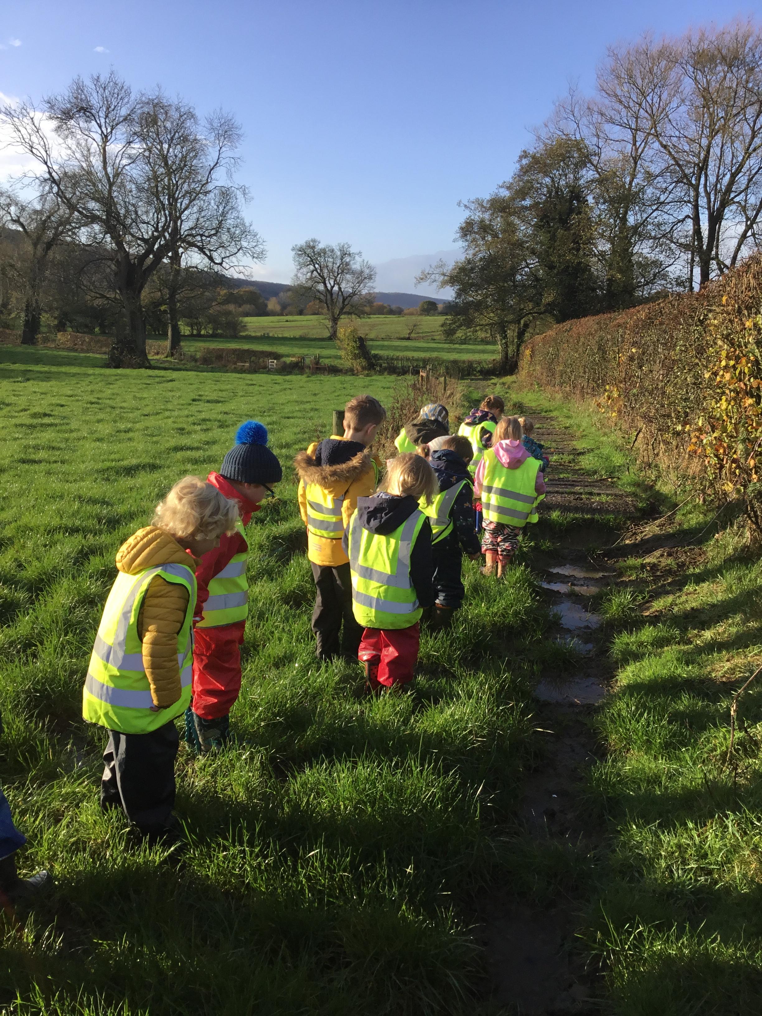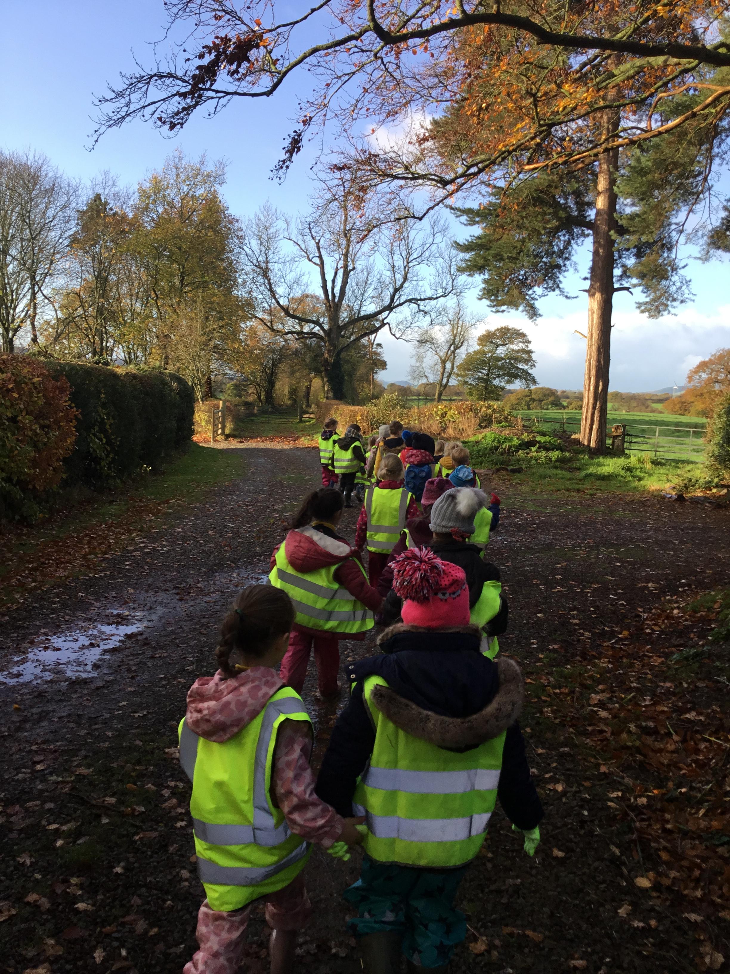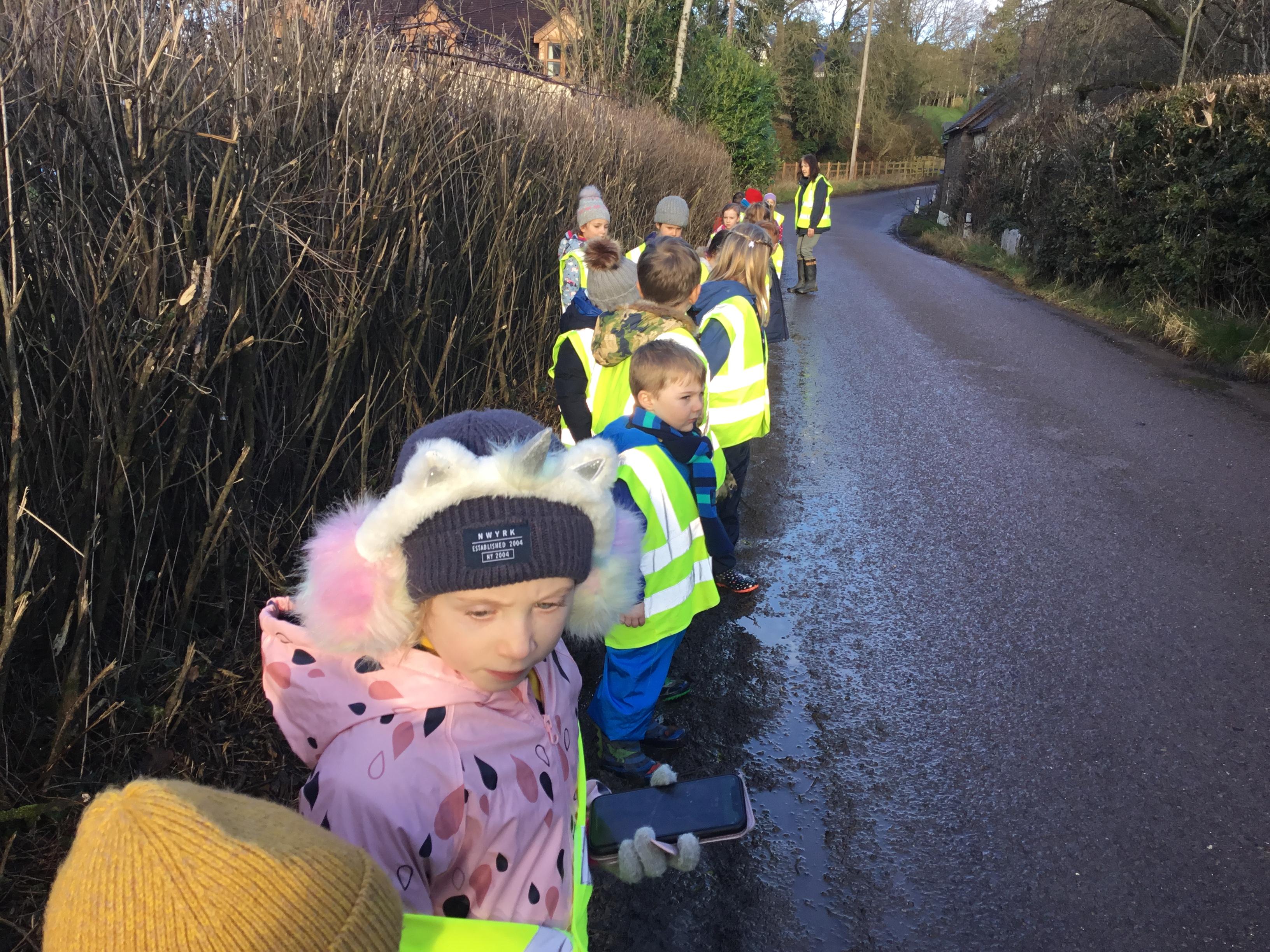 23rd November. We looked at Google Earth and worked out where we would walk. Then, off we went. Mrs Manley let us lead the way and we remembered.