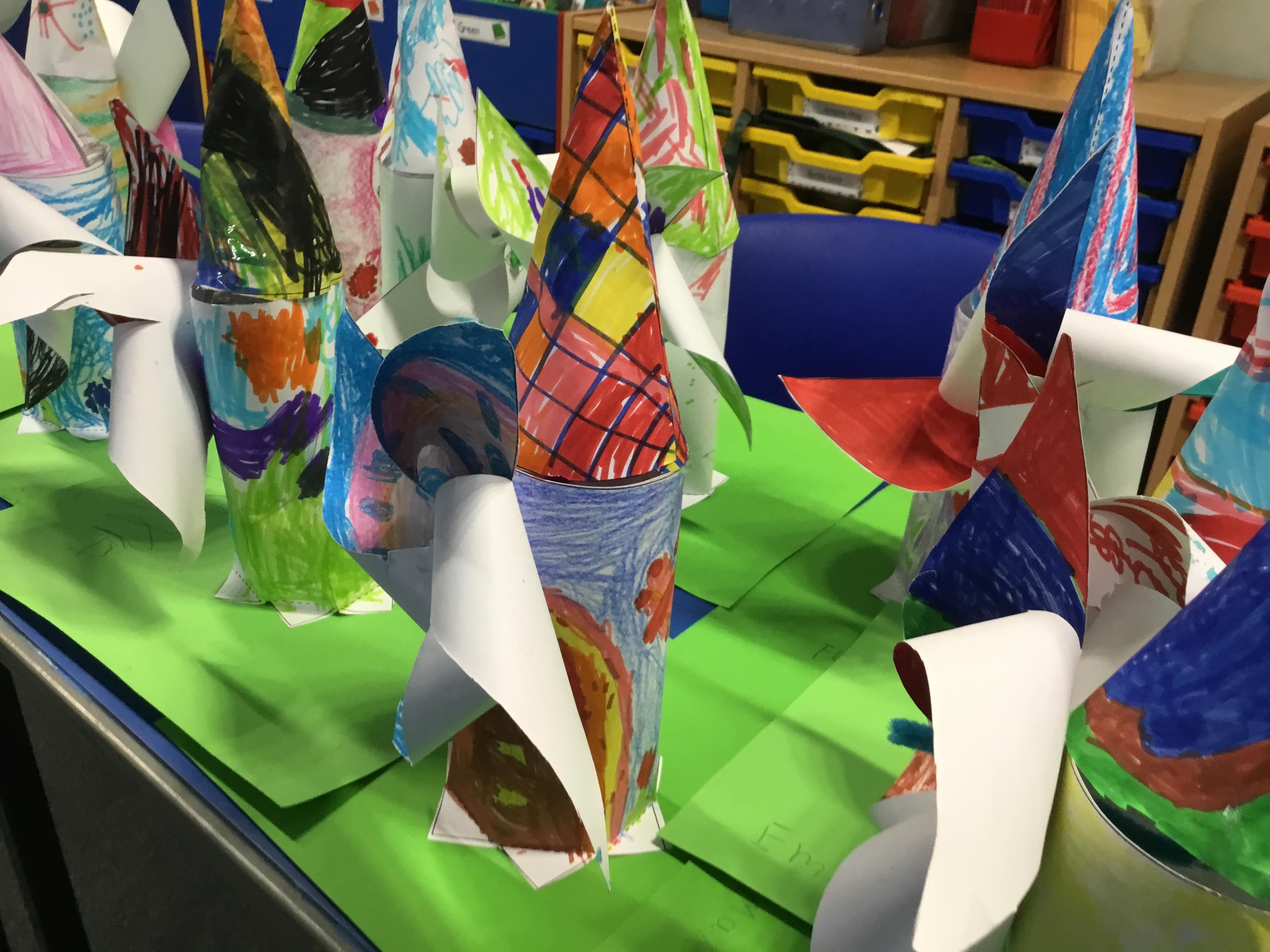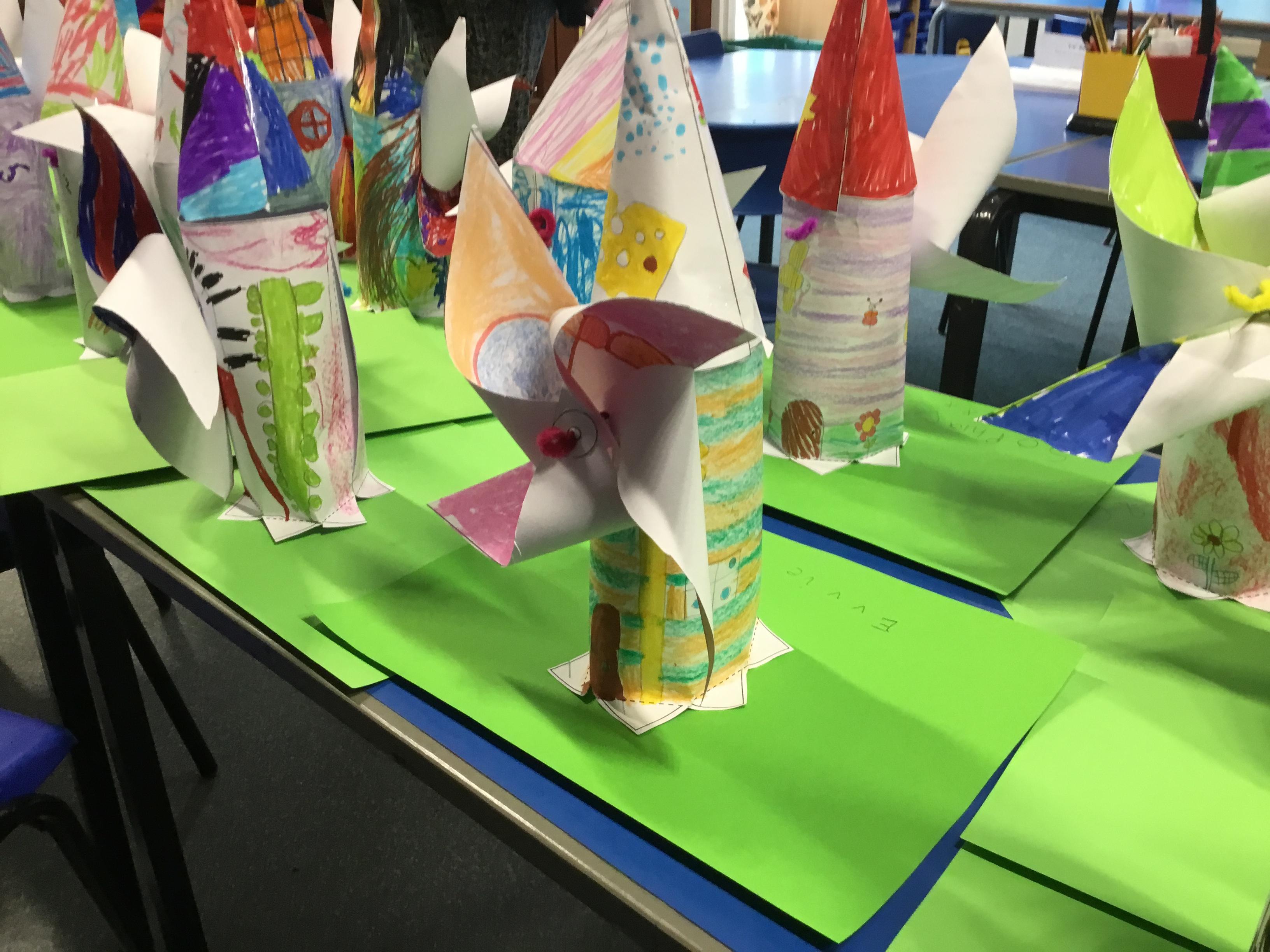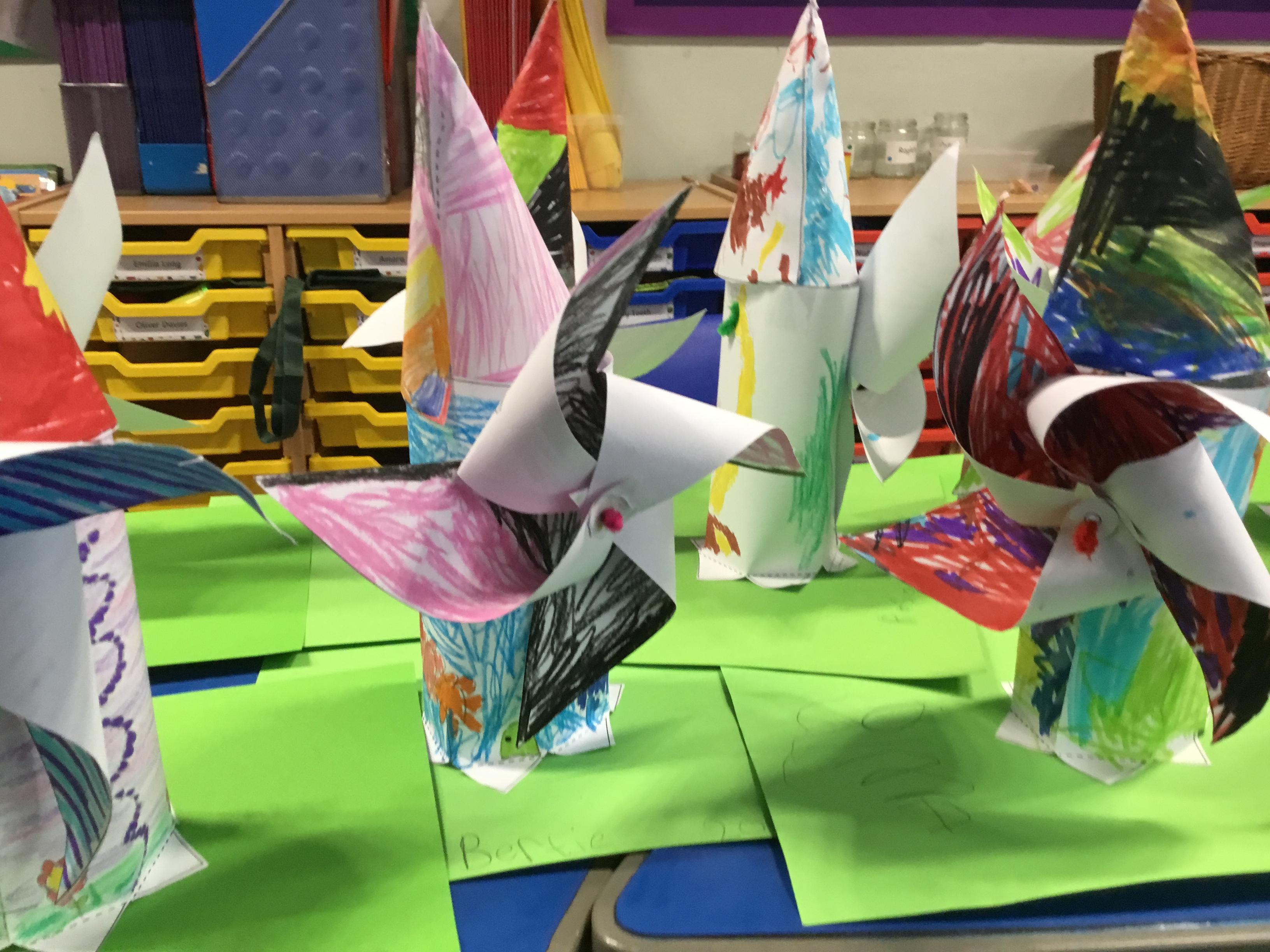 Ticklerton made windmills for their D and T topic. Here they are finished.