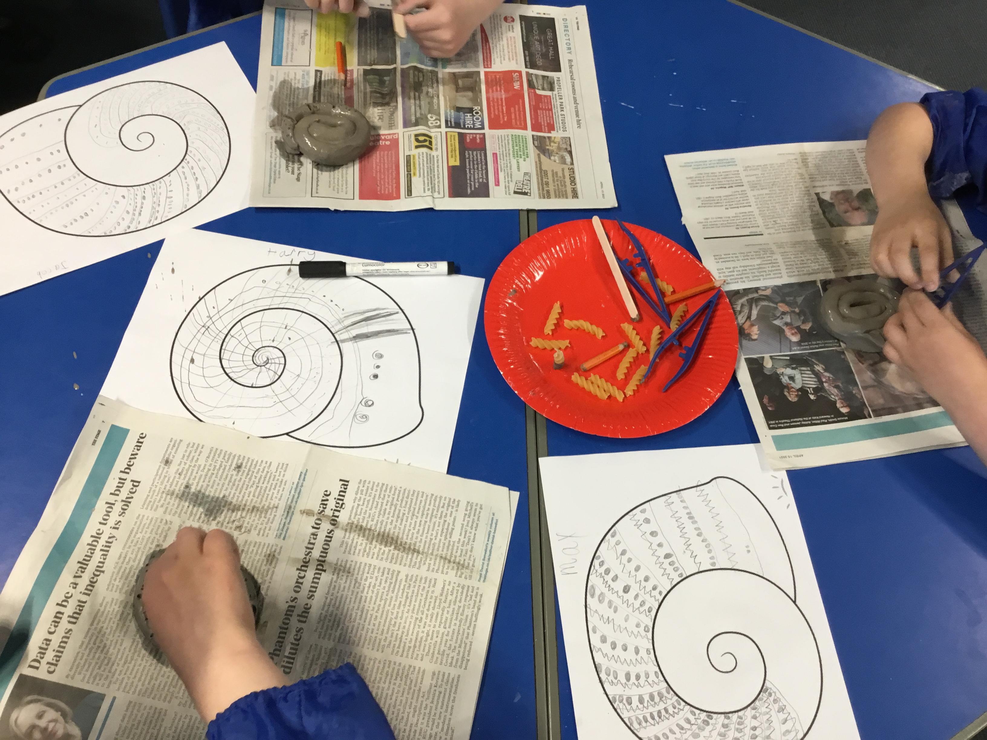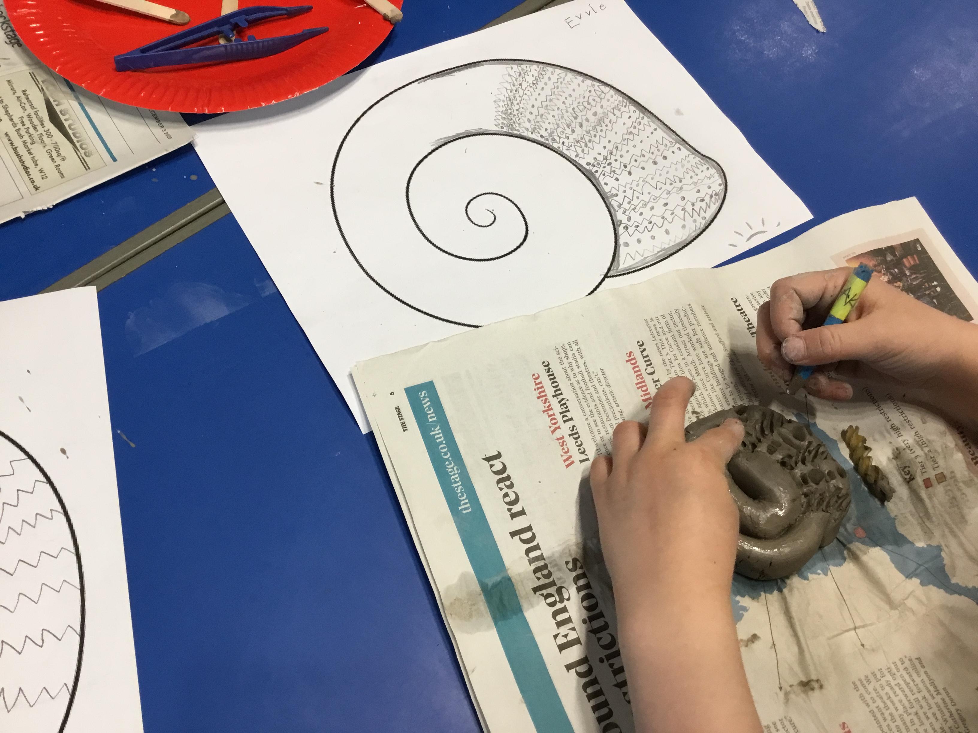29th April 2022. Ticklerton class have been exploring sculpture They designed a snail shell then made it using clay. They etched the shell with the patterns that they had drawn earlier.
