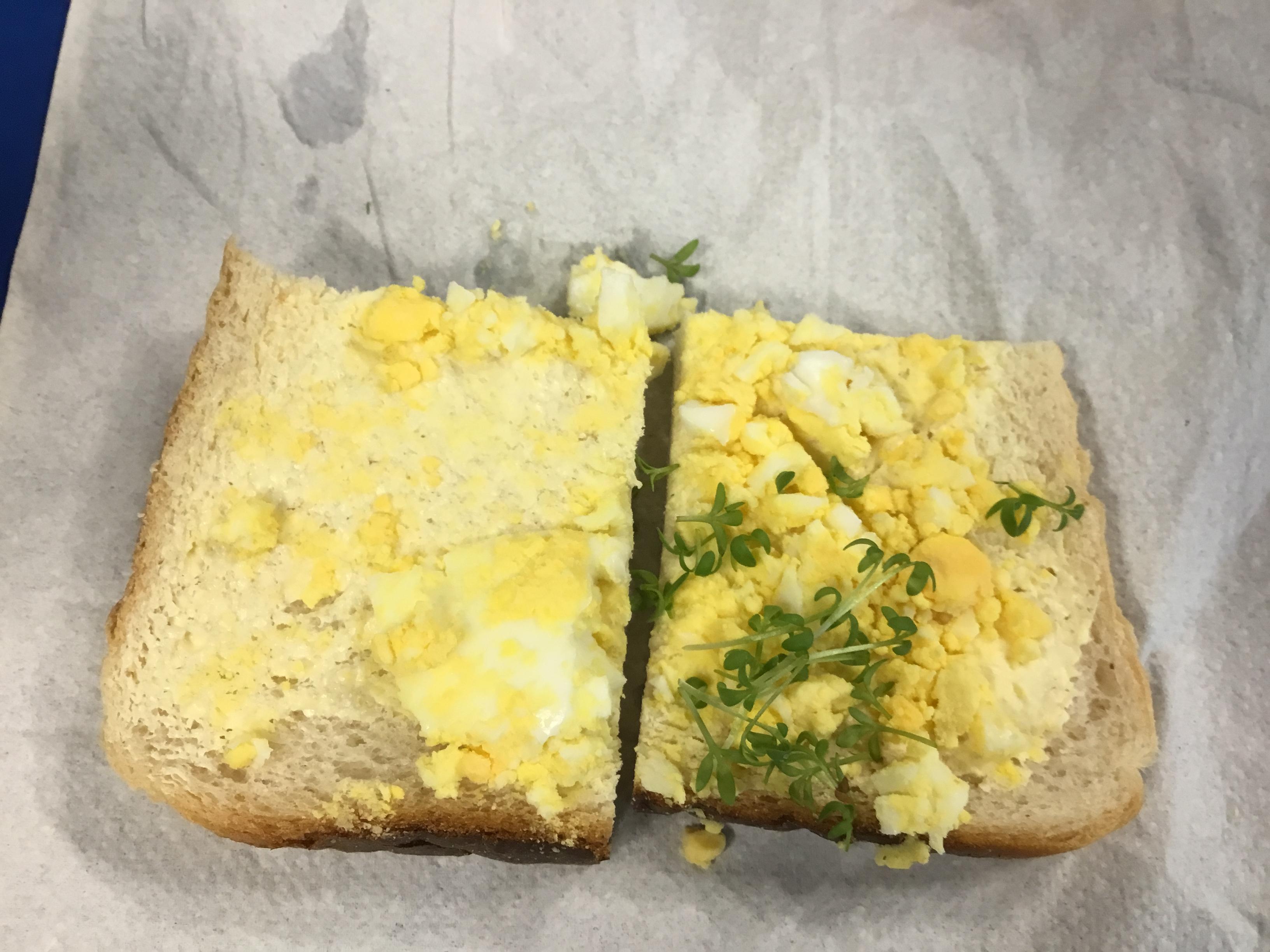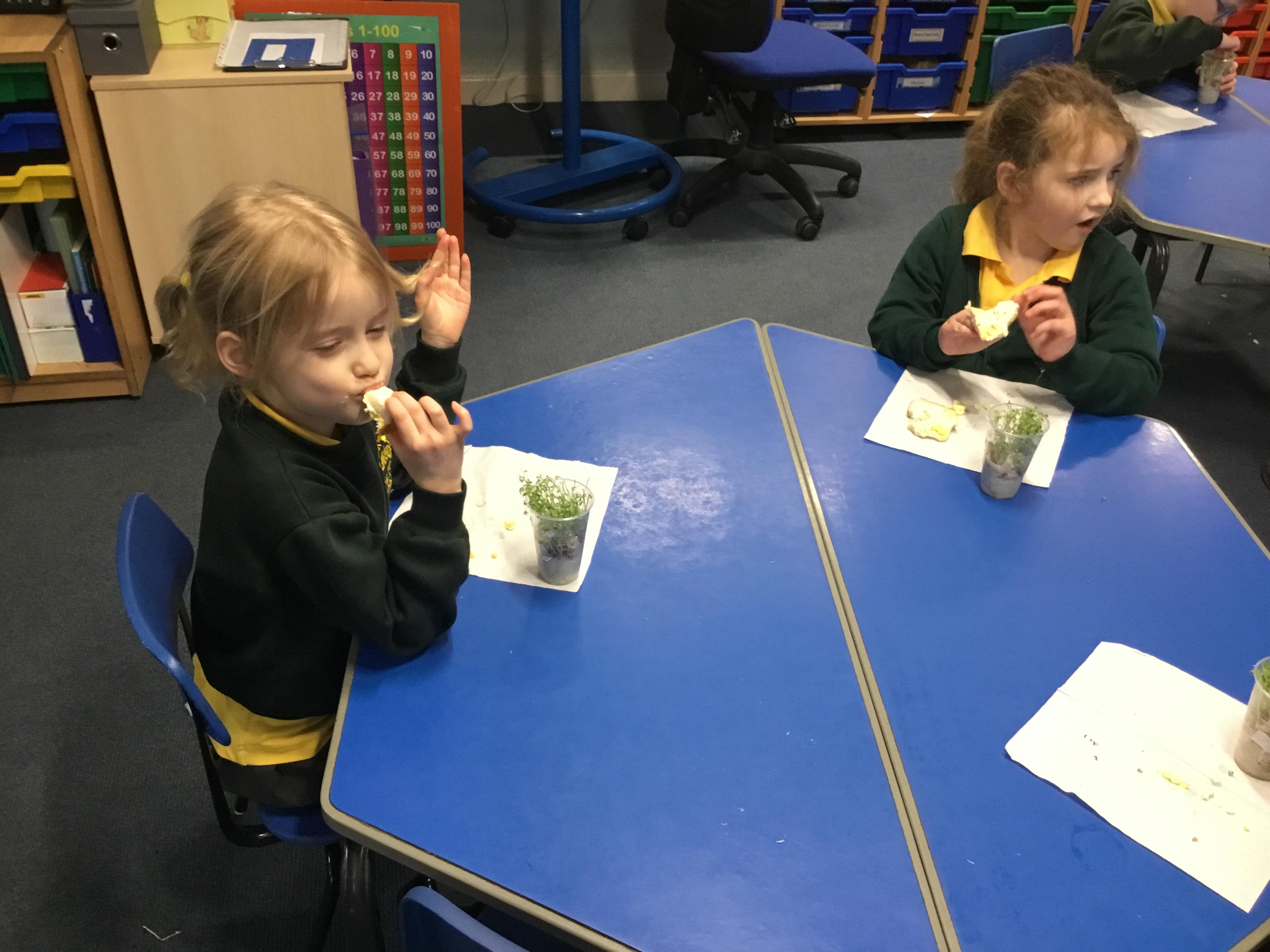15th February 2022. Our cress grew and we ate it in an egg and cress sandwich. The eggs came from Miss Carters chickens.